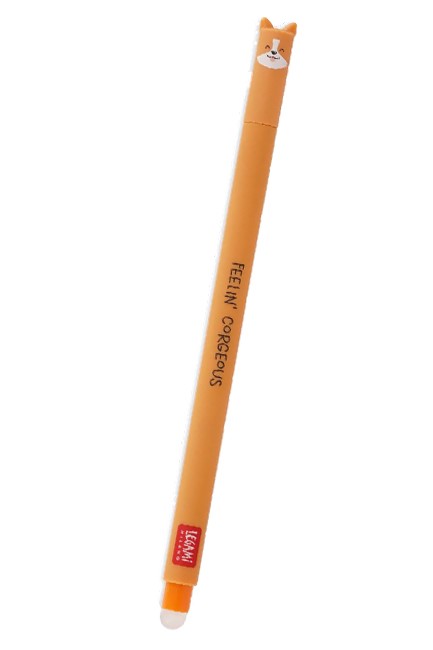 Γράψτε άφοβα χωρίς να φοβάστε τα λάθη με τα νέα στυλό-gel της Legami. Χρησιμοποιήστε το στυλό και διαγράψτε τυχόν λάθη απλά τρίβοντας με την πλαστική σφαίρα που βρίσκεται στη μια άκρη του στυλό. Η σφαίρα που λειτουργεί σαν γόμα δεν υπόκειται σε φθορά όπως μια κανονική γόμα, σβήνει άψογα και δεν καταστρέφει την επιφάνεια στην οποία χρησιμοποιείται.